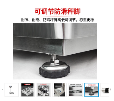 · 高度強不銹鋼304包橡膠可調(diào)秤腳,有效防止稱重時電子秤移動偏移造成重量偏差。