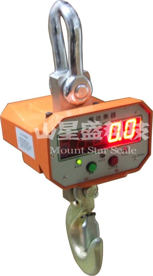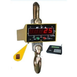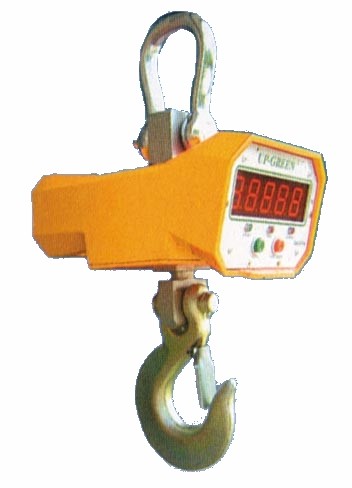 將電子吊秤的吊環(huán)掛在起重機(jī)的吊鉤上,當(dāng)電子吊秤的吊鉤上掛上物品后,在秤體內(nèi)的傳感器受到拉力產(chǎn)生變形,傳感器內(nèi)的電流發(fā)生變化,然后這個(gè)變化的電流通過(guò)A/D轉(zhuǎn)換,再通過(guò)發(fā)射機(jī)將無(wú)線(xiàn)電信號(hào)發(fā)出,根據(jù)國(guó)家無(wú)線(xiàn)電管理委員會(huì)的規(guī)定,電子吊秤一般是用230MHZ和450MHZ發(fā)出的,接收機(jī)接收到信號(hào)以后傳輸給儀表,然后經(jīng)過(guò)儀表的轉(zhuǎn)換計(jì)算,最終顯示出來(lái)。