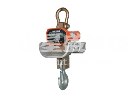 將電子吊秤的吊環掛在起重機的吊鉤上,當電子吊秤的吊鉤上掛上物品后,在秤體內的傳感器受到拉力產生變形,傳感器內的電流發生變化,然后這個變化的電流通過A/D轉換,再通過發射機將無線電信號發出,根據國家無線電管理委員會的規定,電子吊秤一般是用230MHZ和450MHZ發出的,接收機接收到信號以后傳輸給儀表,然后經過儀表的轉換計算,最終顯示出來。